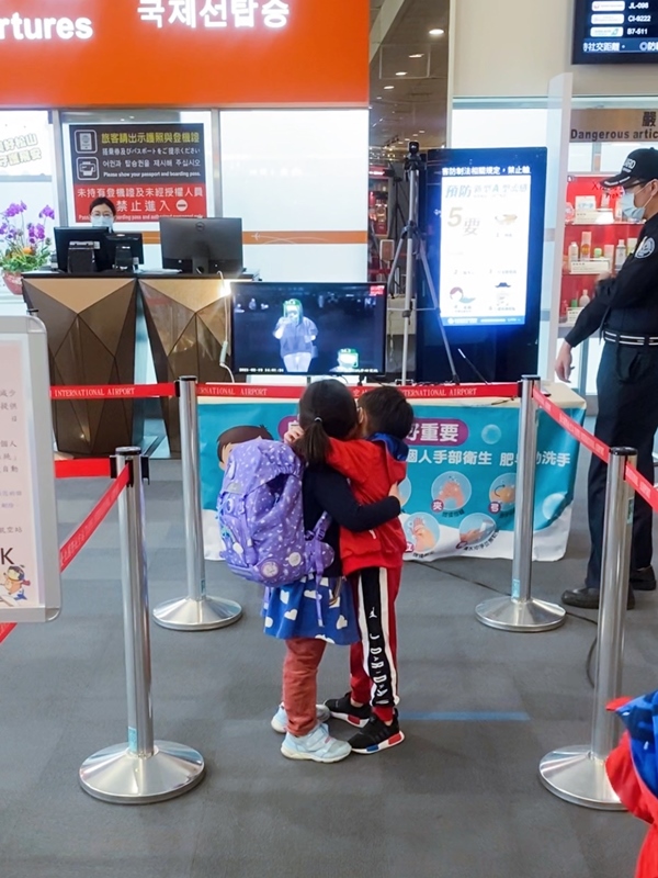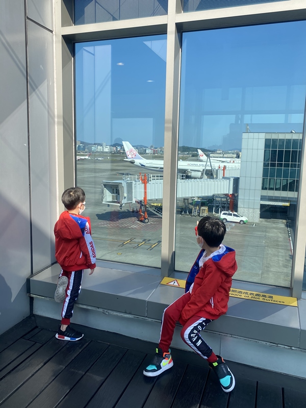原本是想欢送他们,结果气氛从开心慢慢变得感伤,快要进入安检区时,女孩又突然折返跑回来抱住Mitch,小孩子单纯可爱的友谊令人鼻酸又舍不得。送完机,我问Mitch「想不想等飞机起飞?」他点点头,于是我们再多停留了一会儿,飞机起飞时,我们奋力对着飞机挥手,跟一段美好的过去道别。